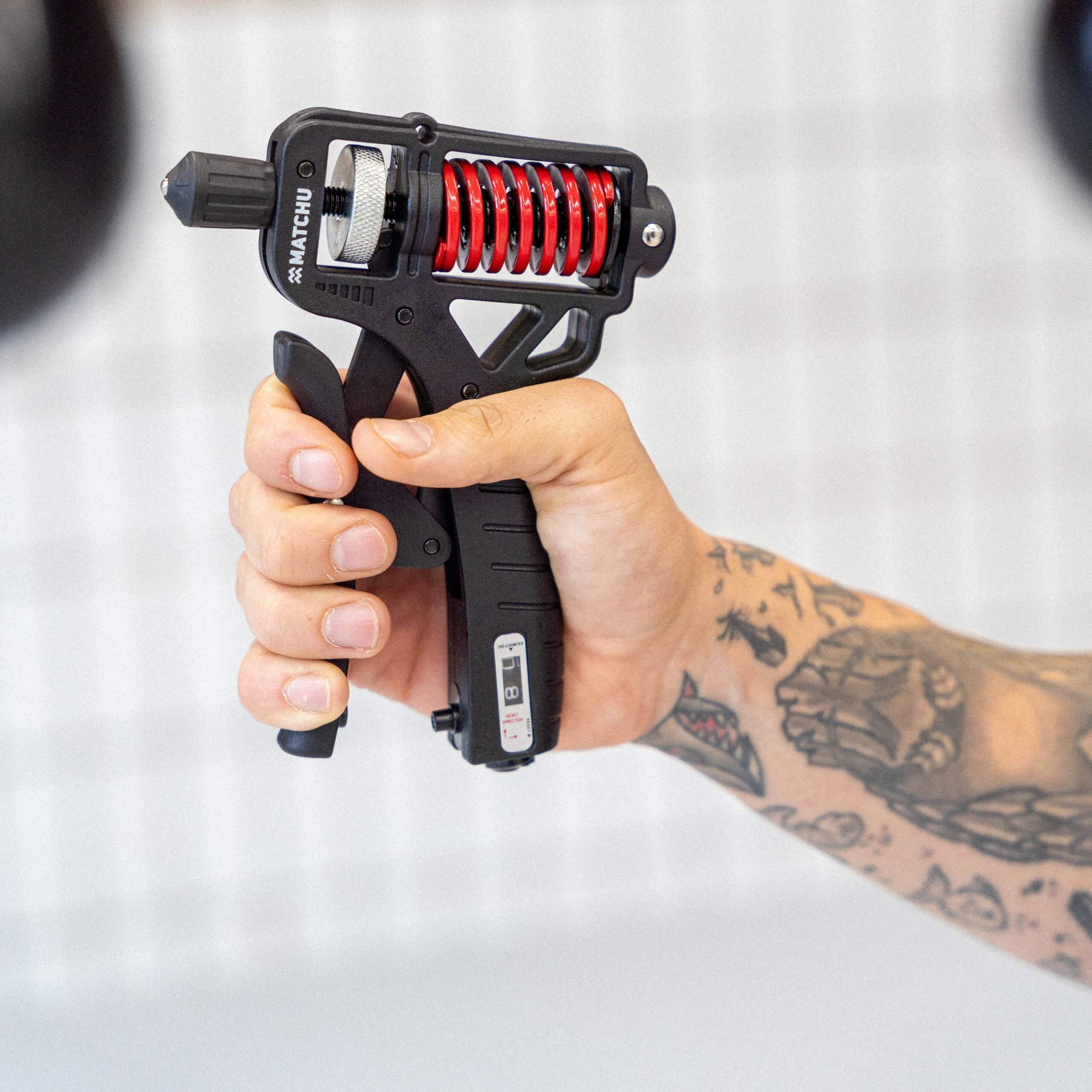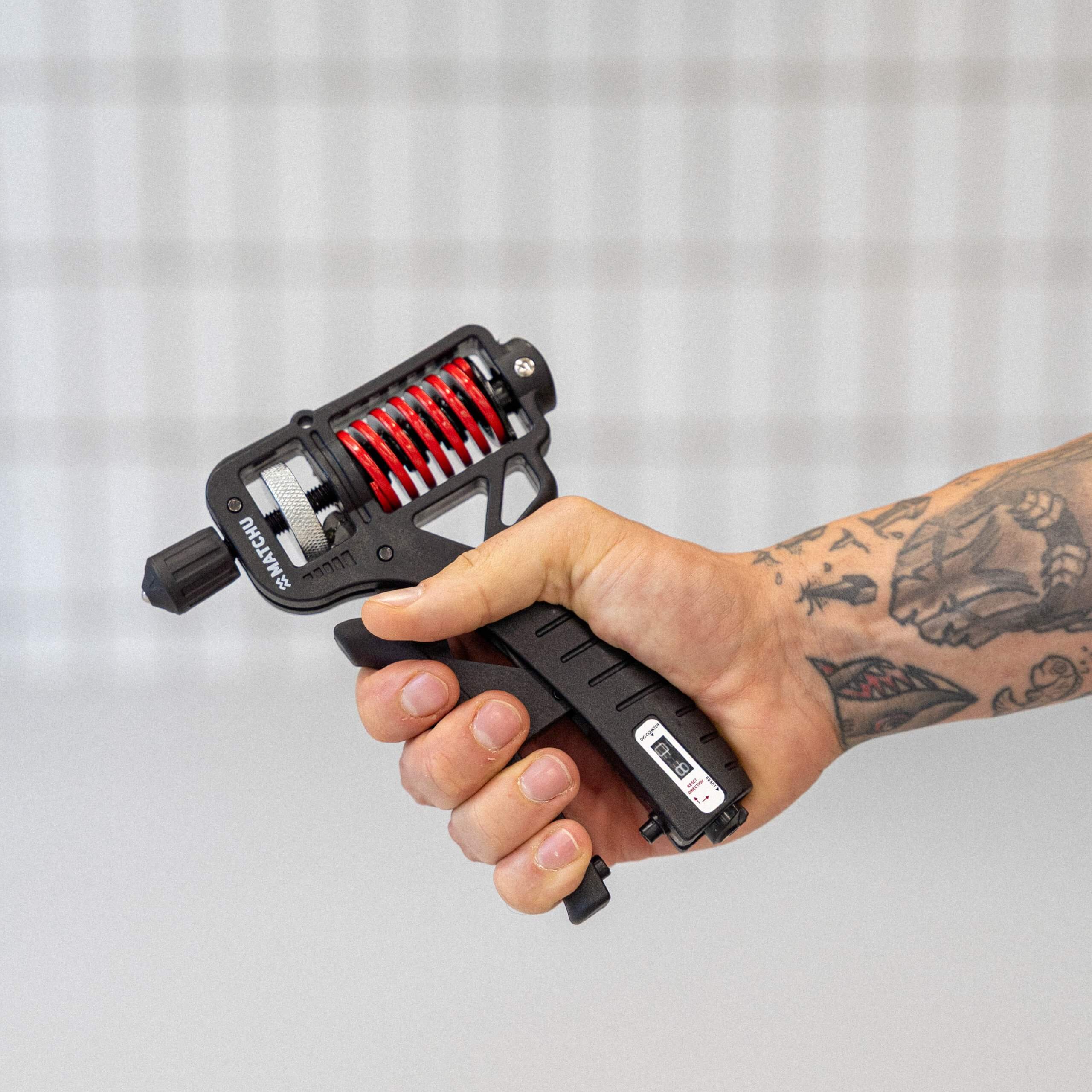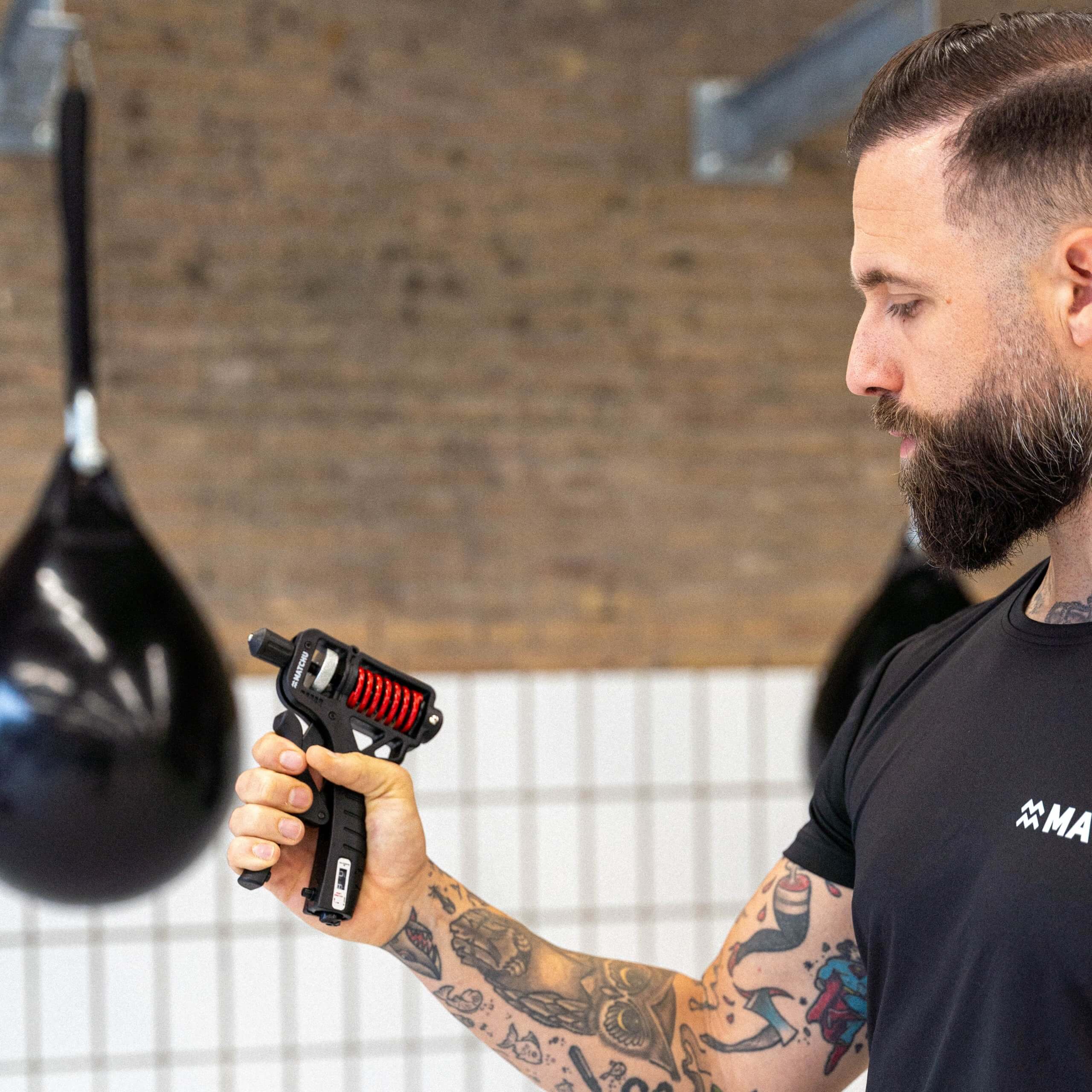 De handtrainer van Matchu Sports is verstelbaar van 5kg tot en met 165kg. Dit doe je door aan de bovenkant te draaien om de ruimte waar de veer zit losser te maken. Dan kun je de veer makkelijk verplaatsen, als je hem eenmaal om het gewenste gewicht hebt geplaatst dan kan je hem weer vast draaien. Door het unieke design ligt de handknijper altijd comfortabel in je hand.